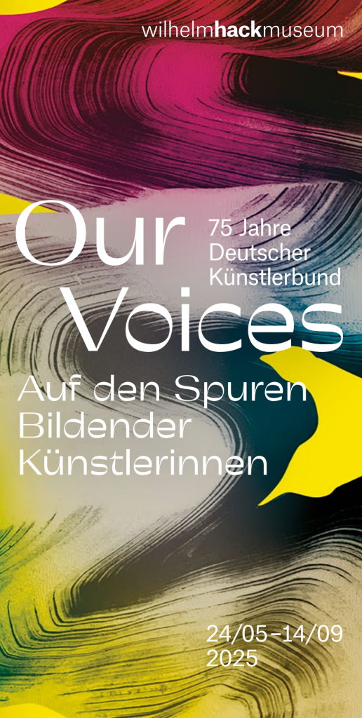 Die Ausstellung Our Voices – Auf den Spuren Bildender Künstlerinnen im Wilhelm-Hack-Museum (24. Mai–14. September 2025), kuratiert von Dr. Almut Hüfler, zeigt vierundzwanzig Positionen bildender Künstlerinnen aus diesem Zeitraum von 75 Jahren. In einem Spektrum verschiedener Medien – von Malerei über Zeichnung, Skulptur, Druckgrafik, Textilkunst, Installation bis hin zu Fotografie und Video – beleuchtet sie sowohl die individuelle, biografische Situation von Künstlerinnen als auch vielfältige Aspekte der sich wandelnden Stellung von Frauen in der Gesellschaft.