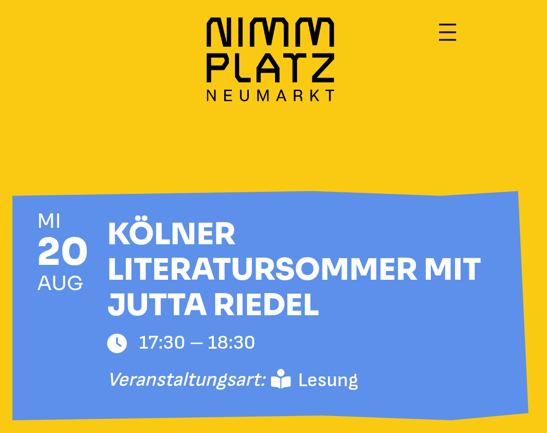 Im Programm des Kölner Literatursommers liest Jutta Riedel aus ihrem fulminanten erzählerischen Debüt Mokrosch. Im Anschluss signiert die Autorin ihr im INTERVALLVERLAG erschienenes Buch und wartet auch noch mit einer kleinen audiovisuellen Überraschung auf …